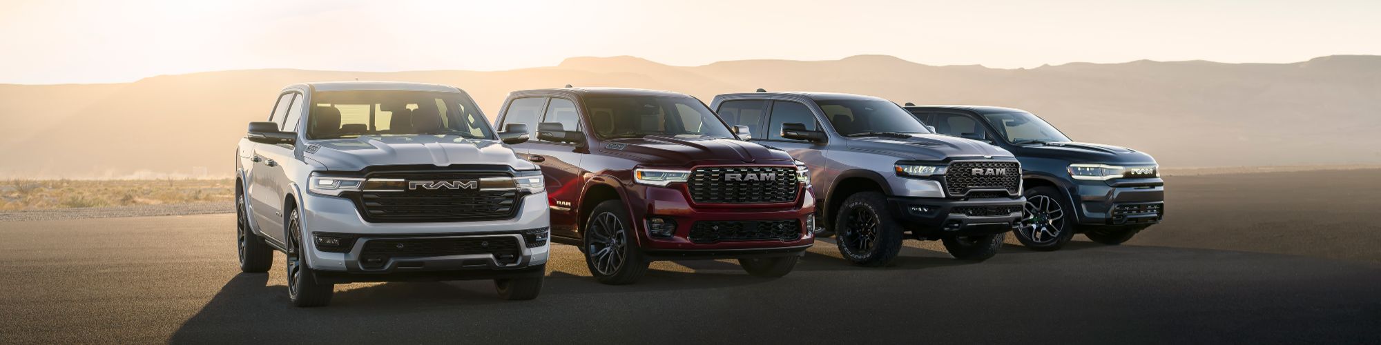 All RAM trucks can be configured with 4X4 capability. If you are interested in exploring unpaved trails, look at the Rebel or the TRX trims. Are you exploring hiking trails and campsites? The Trail-rated Jeep Gladiator Rubicon or Mojave is ready to crawl over rocks with an open-air experience.