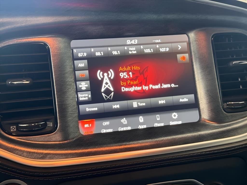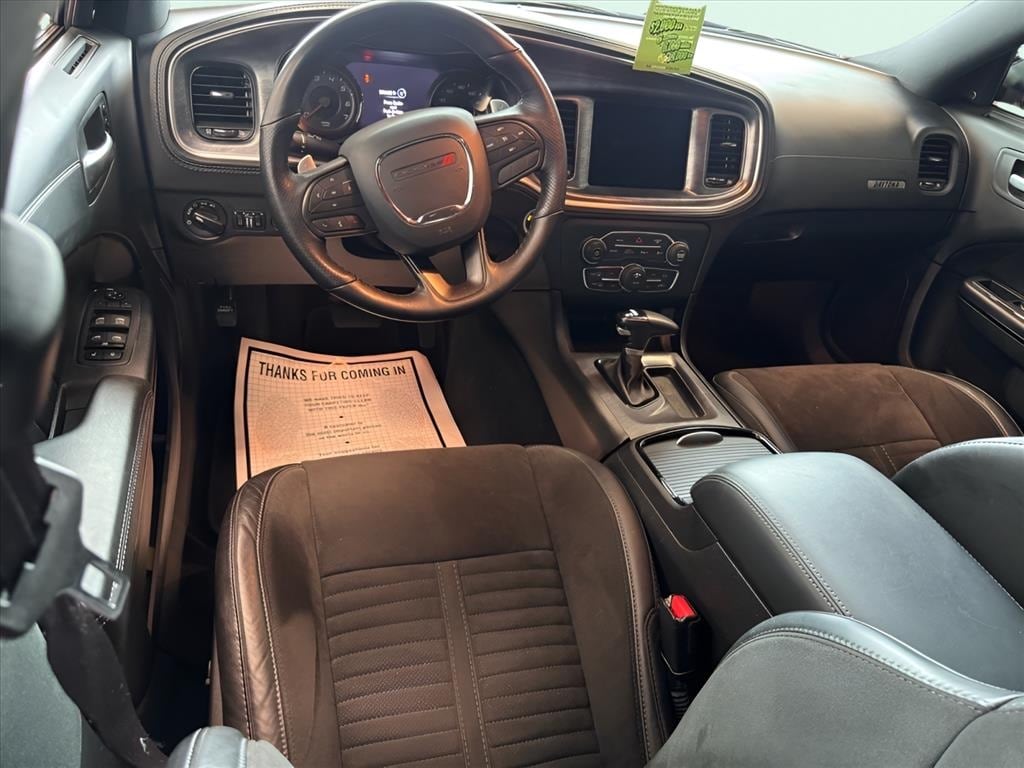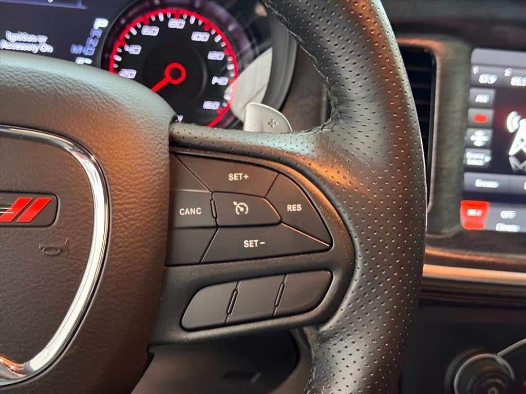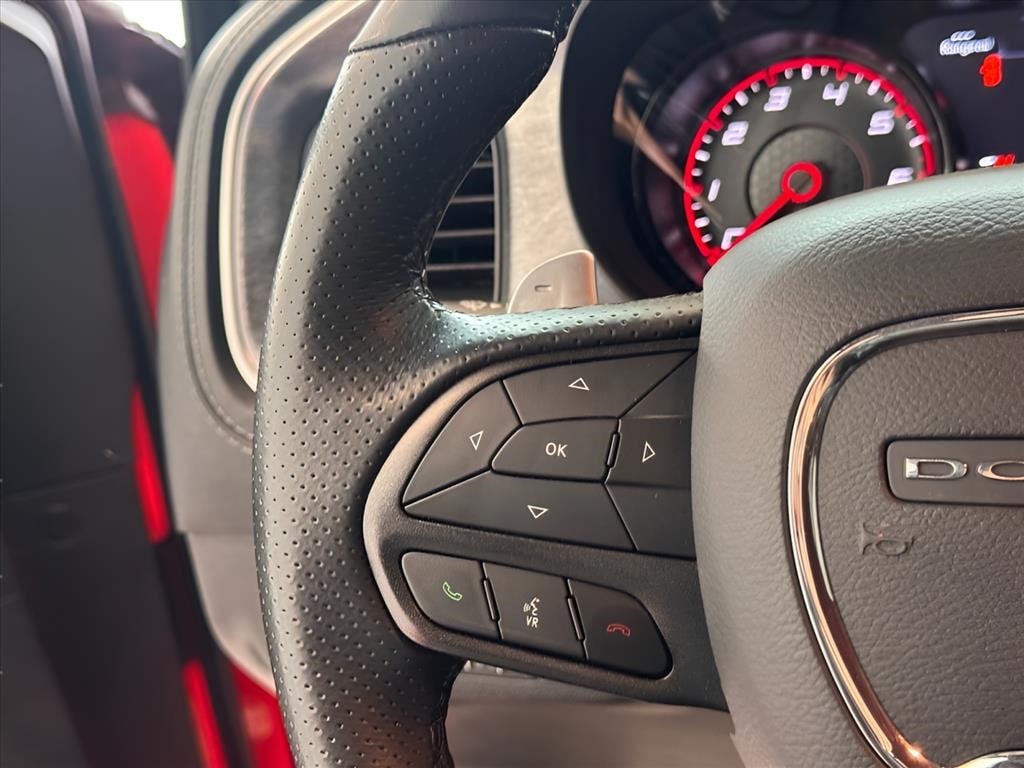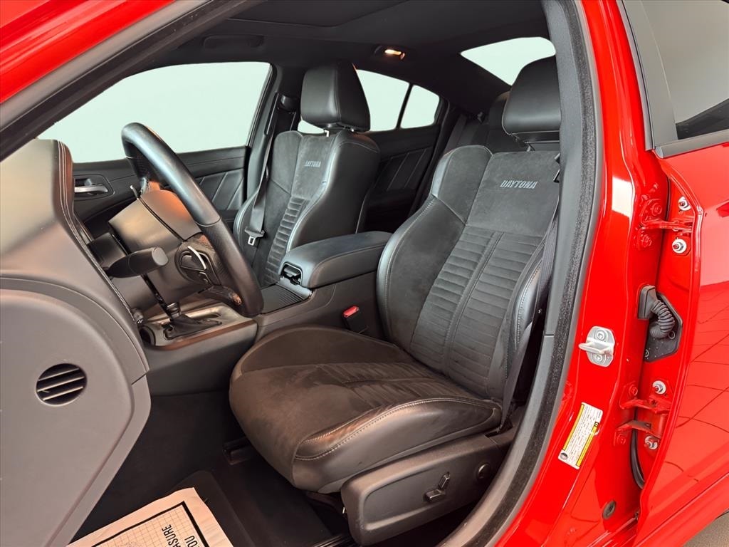 Black Artificial Leather, 1-Yr SiriusXM Guardian Trial, 2-Piece Shark Fin Antenna, 4-Wheel Disc Brakes, 4G LTE Wi-Fi Hot Spot, 6 Speakers, 8.4" Touchscreen Display, ABS brakes, Air Conditioning, Alloy wheels, AM/FM radio: SiriusXM, Anti-whiplash front head restraints, Apple CarPlay, Apple CarPlay/Android Auto, Auto Adjust In Reverse Exterior Mirrors, Auto-Dimming Exterior Driver Mirror, Auto-dimming Rear-View mirror, Automatic temperature control, Black 1-Piece Performance Spoiler, Black-Edged Premium Floormats, Blind Spot & Cross Path Detection, Blind Spot Memory/Power/Heat Mirror, Brake assist, Bumpers: body-color, Carbonite Interior Accents, Cloth Performance Seats, Compass, Daytona Decals Hood/Roof/Trunk, Daytona Edition Group, Daytona Front Grille Badge, Daytona I/P Badge, Daytona Logo Nappa/Alcantara Seat, Delay-off headlights, Deluxe Security Alarm, Driver & Passenger Lower LED Lamps, Driver door bin, Driver vanity mirror, Dual front impact airbags, Dual front side impact airbags, Electronic Stability Control, Emergency communication system: SiriusXM Guardian, Exterior Mirrors Courtesy Lamps, Exterior Mirrors w/Heating Element, For Details, Visit DriveUconnect.com, Four wheel independent suspension, Front & Rear LED Map Pockets, Front anti-roll bar, Front Bucket Seats, Front Center Armrest, Front dual zone A/C, Front License Plate Bracket, Front Overhead LED Lighting, Front reading lights, Fully automatic headlights, Garage door transmitter: HomeLink, Gloss Black I/P Cluster Trim Rings, Google Android Auto, GPS Antenna Input, HD Radio, Heated door mirrors, Heated Front Seats, Heated Steering Wheel, Illuminated entry, Integrated Center Stack Radio, Integrated Voice Command w/Bluetooth, Knee airbag, Leather Shift Knob, Low tire pressure warning, Media Hub (2 USB, AUX), MOPAR Cold Air Intake System, Occupant sensing airbag, Outside temperature display, Overhead airbag, Overhead console, Panic alarm, ParkView Rear Back-Up Camera, Passenger door bin, Passenger vanity mirror, Power 2-Way Driver Lumbar Adjust, Power 2-Way Passenger Lumbar Adjust, Power 8-Way Driver Seat, Power door mirrors, Power driver seat, Power Front Driver/Passenger Seats, Power steering, Power Sunroof, Power Tilt/Telescope Steering Column, Power windows, Premium-Stitched Dash Panel, Quick Order Package 26N, Radio: Uconnect 4C w/8.4" Display, Radio/Driver Seat/Mirrors Memory, Rear anti-roll bar, Rear Armrest w/Cupholder Seat, Rear reading lights, Rear seat center armrest, Rear window defroster, Remote keyless entry, Rhombi 2-Pc Wheel Center Cap, Satin Black Charger Decklid Badge, Speed control, Speed-Sensitive Wipers, Split folding rear seat, Spoiler, Sport steering wheel, Steering wheel mounted audio controls, Tachometer, Telescoping steering wheel, Tilt steering wheel, Traction control, Trip computer, USB Host Flip, Variably intermittent wipers, Ventilated Front Seats, Wheels: 20" x 8" Machined w/Granite Pocket, Wheels: 20" x 9" Lo Gloss Granite Crystal, Black Artificial Leather.