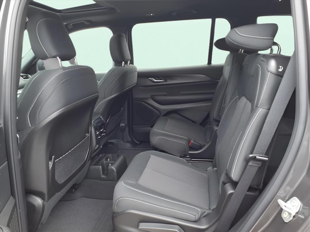 3.45 Rear Axle Ratio, 3rd row seats: split-bench, 4-Wheel Disc Brakes, 6 Speakers, ABS brakes, Air Conditioning, Alloy wheels, AM/FM radio: SiriusXM, Anti-whiplash front head restraints, Automatic temperature control, Brake assist, Bumpers: body-color, Cloth Seats, Compass, Delay-off headlights, Driver door bin, Driver vanity mirror, Dual front impact airbags, Dual front side impact airbags, Electronic Stability Control, Emergency communication system, Four wheel independent suspension, Front anti-roll bar, Front Bucket Seats, Front Center Armrest w/Storage, Front dual zone A/C, Front License Plate Bracket, Front reading lights, Fully automatic headlights, Heated door mirrors, Illuminated entry, Knee airbag, Laredo X, Low tire pressure warning, Manual Fold Seatbacks, Model Year Tracking, Normal Duty Suspension, Occupant sensing airbag, Outside temperature display, Overhead airbag, Overhead console, Panic alarm, ParkView Rear Back-Up Camera, Passenger door bin, Passenger vanity mirror, Power door mirrors, Power driver seat, Power steering, Power Sunroof, Power windows, Quick Order Package 23D Laredo X, Radio data system, Radio: Uconnect 5 w/8.4" Display, Rear air conditioning, Rear anti-roll bar, Rear reading lights, Rear window defroster, Rear window wiper, Reclining 3rd row seat, Remote keyless entry, Security system, Speed control, Speed-Sensitive Wipers, Split folding rear seat, Spoiler, Steering wheel mounted audio controls, Tachometer, Telescoping steering wheel, Tilt steering wheel, Traction control, Trip computer, Variably intermittent wipers, Voltmeter, Wheels: 18" x 8.0" Fully Painted Aluminum.