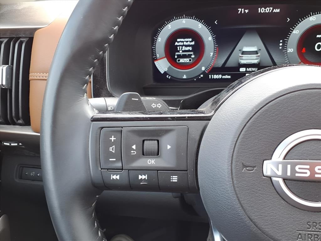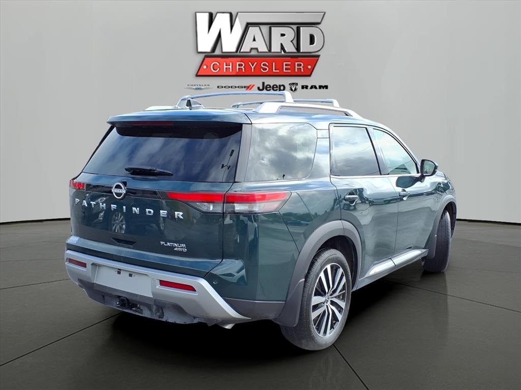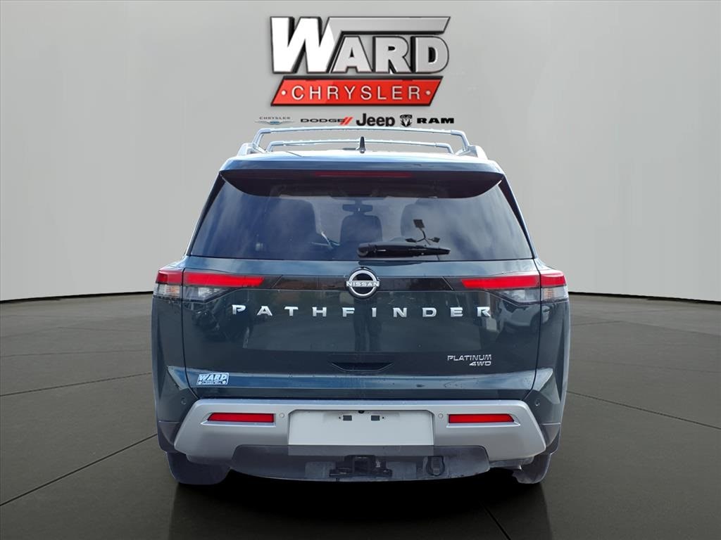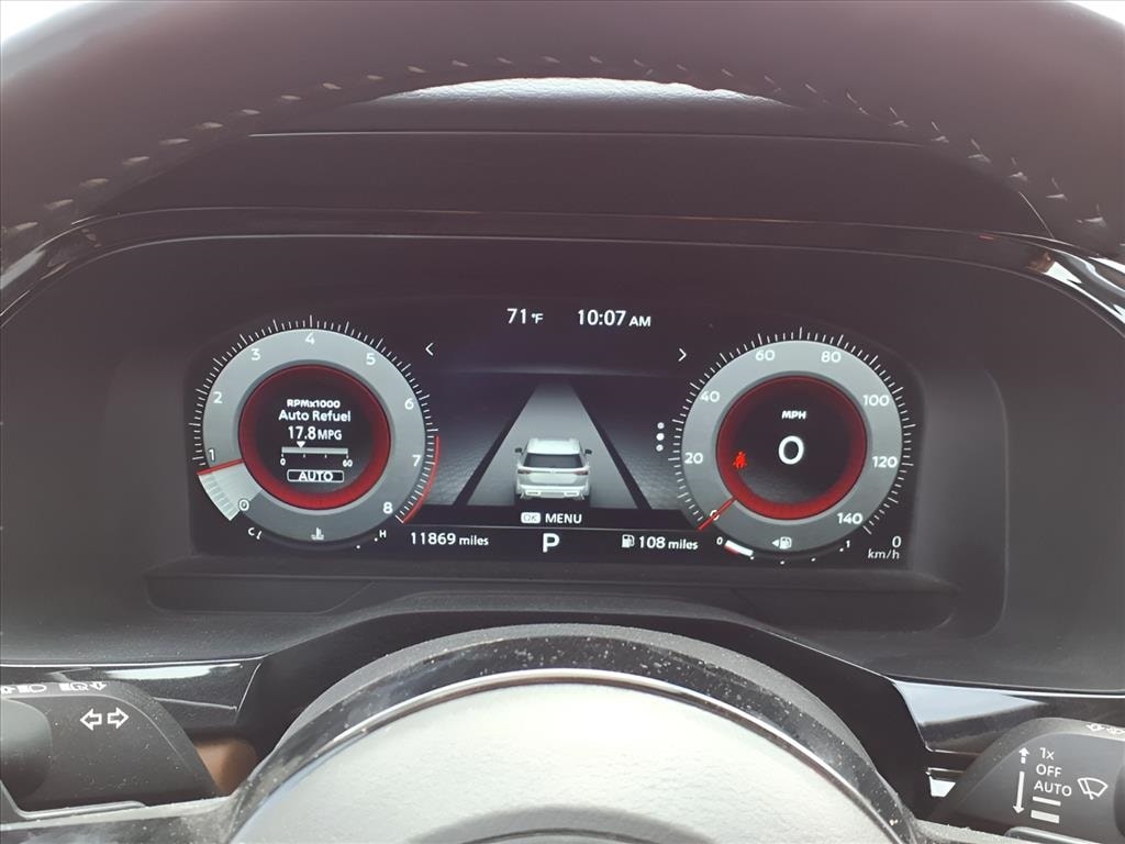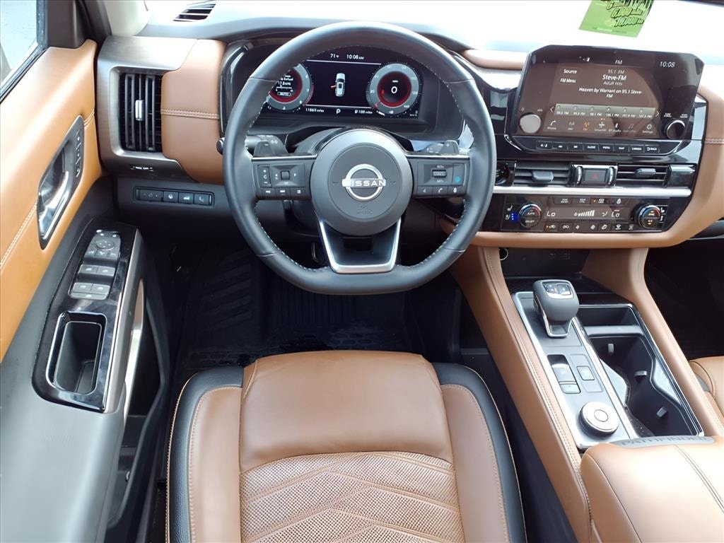 4WD, 13 Speakers, 2nd-Row Captain Chairs, 2nd-Row Rear Headrest, 3rd row seats: bench, 4-Wheel Disc Brakes, ABS brakes, Air Conditioning, Alloy wheels, AM/FM radio: SiriusXM, Auto High-beam Headlights, Auto tilt-away steering wheel, Auto-dimming Rear-View mirror, Automatic temperature control, Bodyside moldings, Bose Premium Audio System, Brake assist, Bumpers: body-color, Cargo Area Protector, Cargo Net, Cargo Package, Climate Controlled Front Bucket Seats, Cross Bars, Delay-off headlights, Driver door bin, Driver vanity mirror, Dual front impact airbags, Dual front side impact airbags, Electronic Stability Control, Emergency communication system, Exterior Parking Camera Rear, First Aid, Four wheel independent suspension, Front anti-roll bar, Front Bucket Seats, Front Center Armrest, Front dual zone A/C, Front reading lights, Fully automatic headlights, Garage door transmitter: HomeLink, Heads-Up Display, Heated door mirrors, Heated front seats, Heated rear seats, Heated steering wheel, Illuminated entry, Knee airbag, Leather steering wheel, Low tire pressure warning, Memory seat, Navigation system: NissanConnect with Navigation and Services, Nissan USB Charging Cable Set, NissanConnect featuring Apple CarPlay and Android Auto, Occupant sensing airbag, Outside temperature display, Overhead airbag, Overhead console, Panic alarm, Passenger door bin, Passenger vanity mirror, Platinum Captain Chairs Package, Power door mirrors, Power driver seat, Power Liftgate, Power moonroof, Power passenger seat, Power steering, Power windows, Radio data system, Radio: AM/FM Audio System, Rain sensing wipers, Rear air conditioning, Rear anti-roll bar, Rear reading lights, Rear seat center armrest, Rear side impact airbag, Rear window defroster, Rear window wiper, Reclining 3rd row seat, Remote keyless entry, Security system, Semi-Aniline Leather-Appointed Seating Surfaces, Speed control, Speed-sensing steering, Speed-Sensitive Wipers, Split folding rear seat, Spoiler, Steering wheel memory, Steering wheel mounted audio controls, Tachometer, Telescoping steering wheel, Tilt steering wheel, Traction control, Trip computer, Turn signal indicator mirrors, Variably intermittent wipers, Ventilated front seats, Wheels: 20" x 8J Machined Alloy, 4WD.
