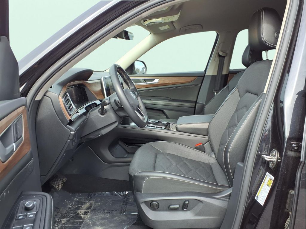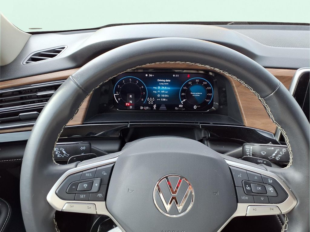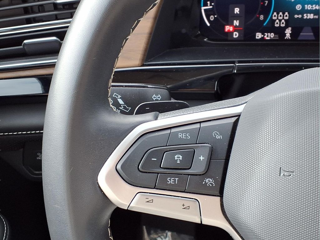 3.60 Axle Ratio, 3rd row seats: split-bench, 4-Wheel Disc Brakes, 6 Speakers, ABS brakes, Air Conditioning, Alloy wheels, AM/FM radio: SiriusXM with 360L, Auto-dimming Rear-View mirror, Automatic temperature control, Brake assist, Bumpers: body-color, Compass, Delay-off headlights, Driver door bin, Driver vanity mirror, Dual front impact airbags, Dual front side impact airbags, Electronic Stability Control, Emergency communication system: VW Car-Net Safe & Secure 5-year, Exterior Parking Camera Rear, Four wheel independent suspension, Front anti-roll bar, Front Bucket Seats, Front Center Armrest, Front dual zone A/C, Front fog lights, Front reading lights, Fully automatic headlights, Heated door mirrors, Heated front seats, Heated steering wheel, Heated/Actively Ventilated Front Bucket Seats, Illuminated entry, Low tire pressure warning, Occupant sensing airbag, Outside temperature display, Overhead airbag, Overhead console, Panic alarm, Passenger door bin, Passenger vanity mirror, Perforated V-Tex Leatherette Seating Surfaces, Power door mirrors, Power driver seat, Power Liftgate, Power steering, Power windows, Radio data system, Radio: MIB3 Composition Media, Rain sensing wipers, Rear air conditioning, Rear anti-roll bar, Rear reading lights, Rear seat center armrest, Rear window defroster, Rear window wiper, Remote keyless entry, Security system, Speed control, Speed-sensing steering, Split folding rear seat, Spoiler, Standard Suspension, Steering wheel mounted audio controls, Tachometer, Telescoping steering wheel, Tilt steering wheel, Traction control, Trip computer, Turn signal indicator mirrors, Variably intermittent wipers, Ventilated front seats, Wheels: 20" 2-Tone Machined Alloy.